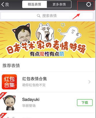7. 进入表情设置页面,点击右上角工具标示,点击后再点击“管理表情”页面。