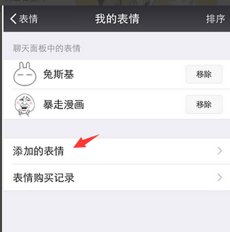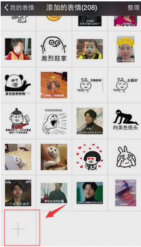8. 进入表情管理模块,下拉到最下面的表情包,点击“+”号,表示添加表情。