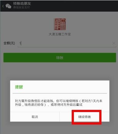 4、提示版本问题,及对方可能暂时收不到,点击继续!
