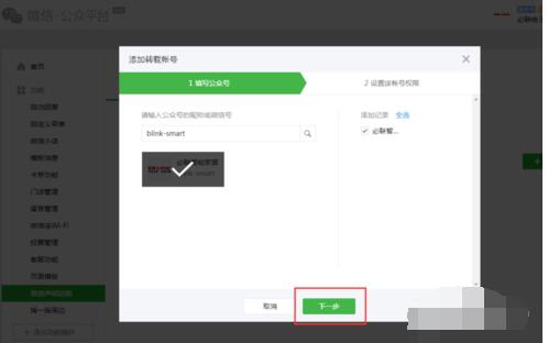 3、在心的界面中,填入需要授权的微信公众号账户,然后点击下方的下一步操作按钮,如下图所示:
