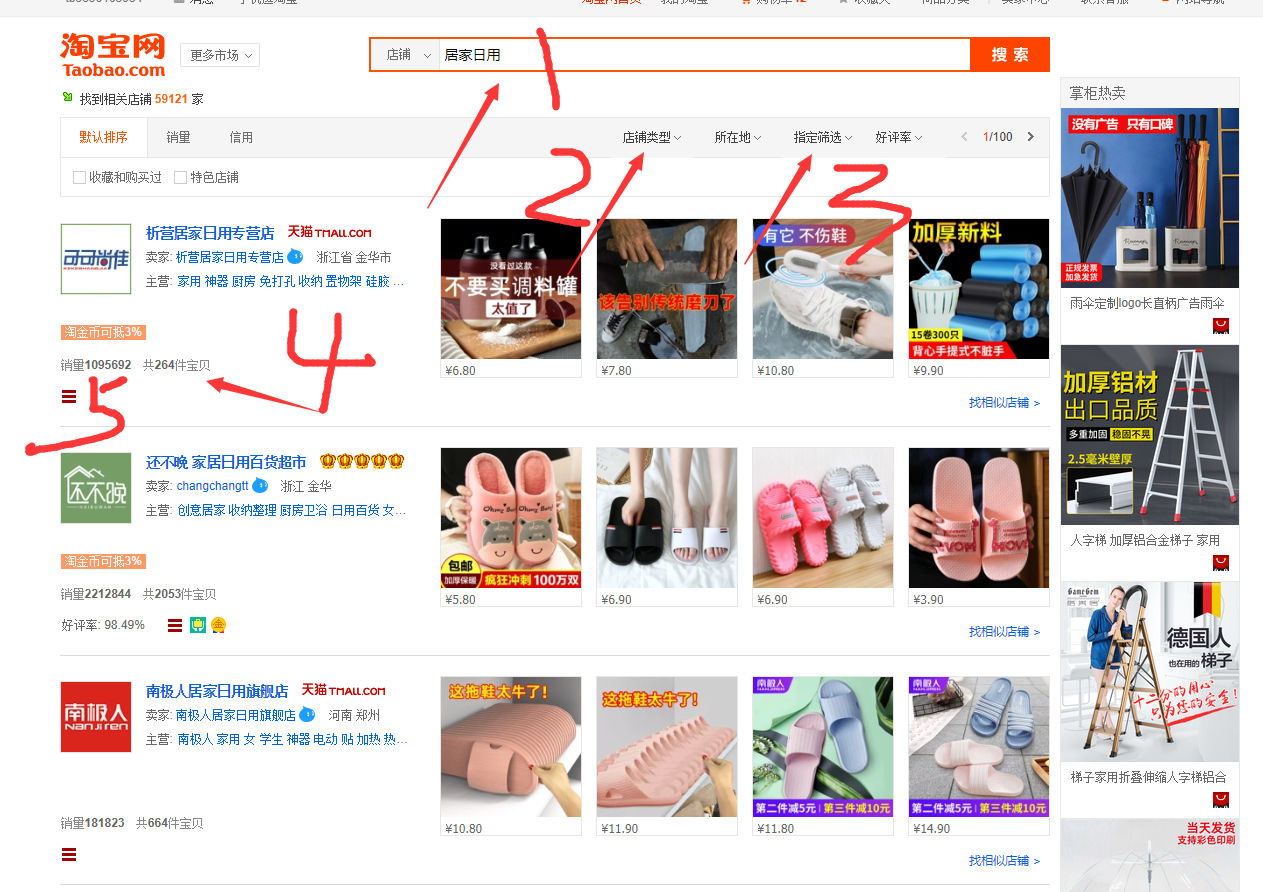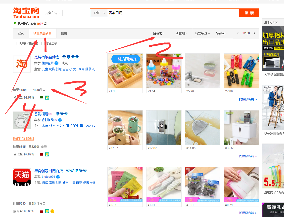 最核心的几个筛选条件:销量从搞到底,店铺等级,宝贝数量,店铺销量,店铺等级