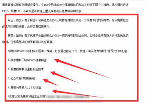 然后就有很多人来找他!并且都是精准粉。都是通过百度搜索关键词,然后找到新闻源软文!直接加他的微信号咨询代理和产品。