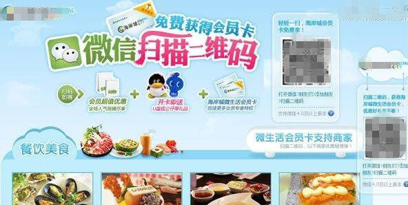 营销方式:在微信中,用户只需用手机扫描商家的独有二维码,就能获得一张存储于微信中的电子会员卡,可享受商家提供的会员折扣和服务。企业可以设定自己品牌的二维码,用折扣和优惠来吸引用户关注,开拓O2O营销模式。
