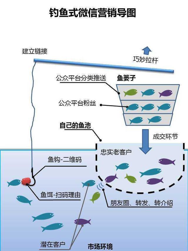 如何引流呢,其实很简单 —— 客源好比鱼儿 ,互联网的各大渠道好比鱼塘,而引流的方法技巧就好比钓竿与诱饵。