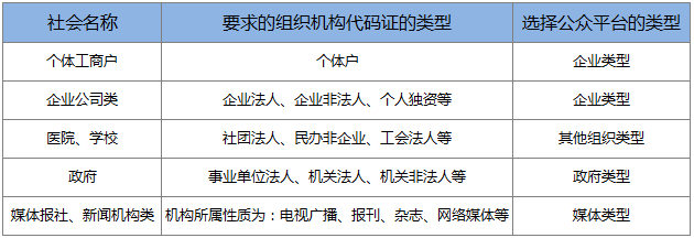 您好,可以参考《组织机构代码证》上的机构类型,来选择公众平台注册的主体类型。