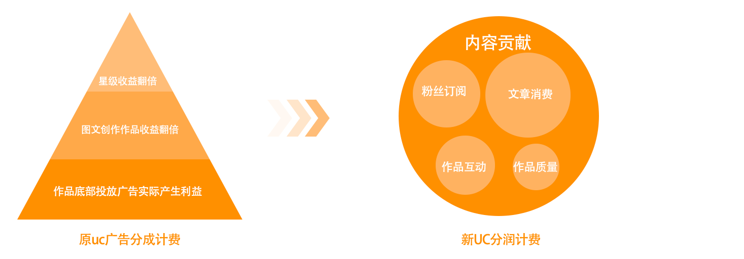 1、新的UC分润计费方法将基于每个作品本身质量、读者消费、互动情况等维度计算出每个作品的分成,再相加得出该账号当日总分成,不再根据作品投放广告实际产生的收益分成。