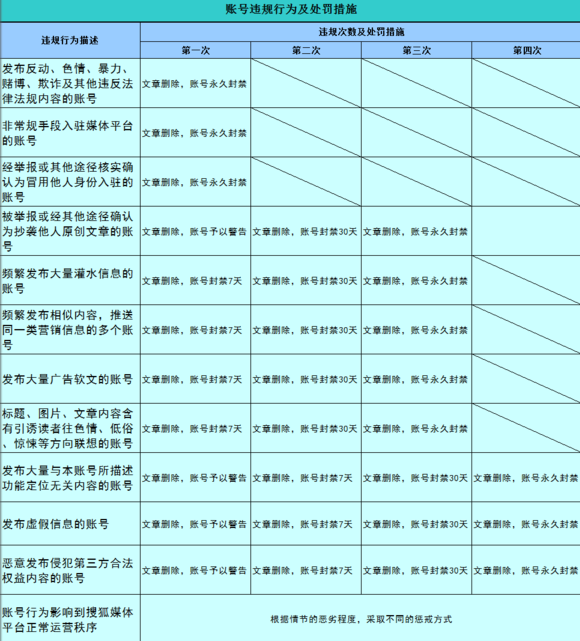 我仔细看了看搜狐自媒体的“违规账号阶梯封禁方案公告”,按照搜狐自媒体的规定,惩罚是一步一步的增大的。只有极少数情况下才会一次性永久封禁。如"发布反动,色情,暴力,赌博,欺诈以及其他违法法律法规的内容的账号",或者其他非正常手段开通媒体平台账号的。如果封禁朱海涛的搜狐自媒体,那么理由肯定是这些。而我的媒体平台账号是正常开通的。
