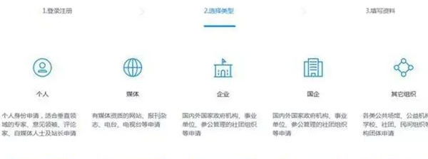 3,选择我们要注册的账号类型,个人注册的话就选择个人,如果想用营业执照注册,就选择企业,然后进入到下一步;