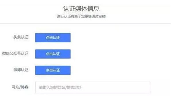 5,资料填写完整以后,下面会提醒你来认证媒体信息,这里可以绑定你的头条号或者微博等资料,如果都没有的话,也可以忽略;