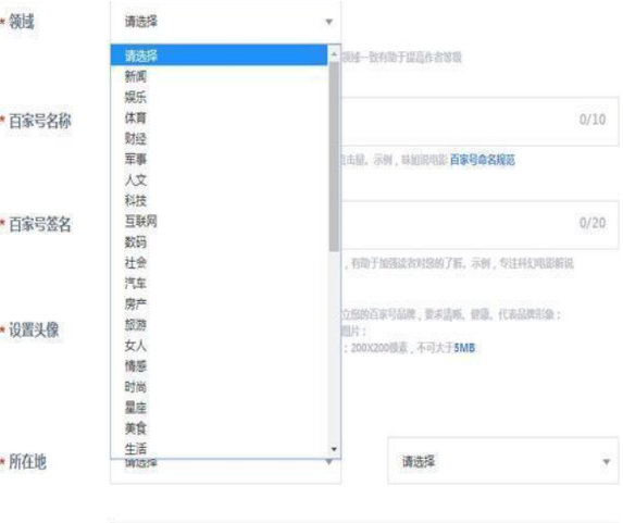 第四步:账号的详细信息填写。选择好领域之后,输入百家号名称,以及签名,签名一定要跟自己的领域相匹配才可以哦!领域一定要选择好,因为这在后期百家号是不允许修改领域的。