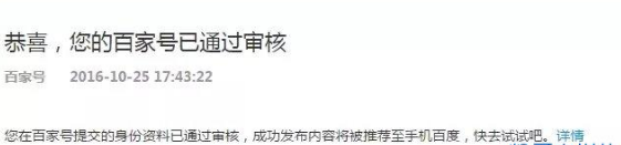 搜一客前些天测试注册了6个百家号,5个在三天内通过审核,另外一个提示和平台定位不符被驳回,重新提交后也通过了。