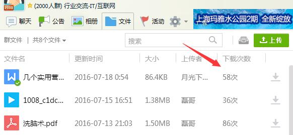 只要群主没有删除你的文件,那么下载次数必然会一直增涨,转化率能达到百分之五十。