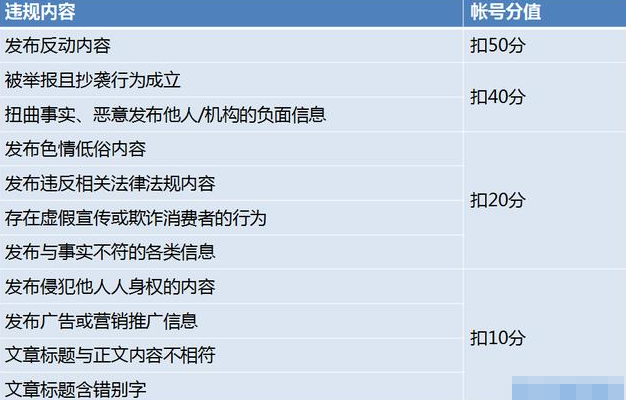 自媒体平台都有信用分,用来提现创作者的违规情况。