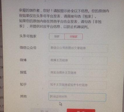 如果在其他平台,比如百家号、企鹅号、大鱼号等平台也发布了,那就选非独家,并且把其他平台的主页链接填上去。