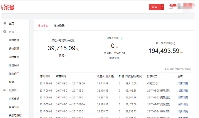 下面的图片,就是一个原创账号的收益,如果没有开原创,是根本不可能达到这种效果的。