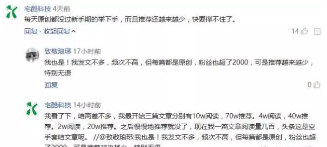 “天天都在发原创,不过新手,推荐越来越少。” 看起来挺委屈的,真委屈么? 做过头条的数据分析么? 搞清楚头条的推荐规则和机制了么?