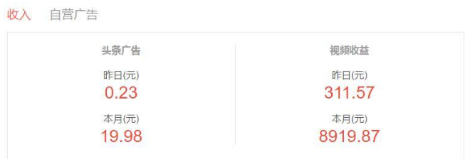 今日头条的广告总共有两个部分:自营广告、第二是头条广告。推荐大家直接做头条视频收益,视频只要有播放就有收入,一般万次播放5元左右,选视频,起好标题,配图,只要到位,一天几十万的播放量还是比较轻松的。