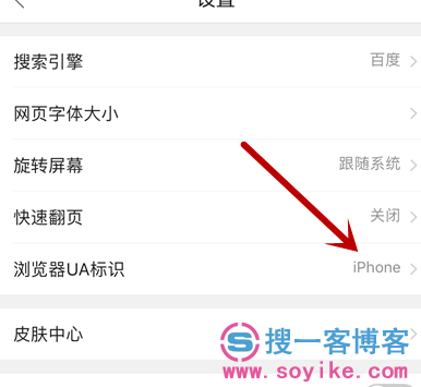 在设置当中,我们会看到一个选项叫做浏览器UA标识。