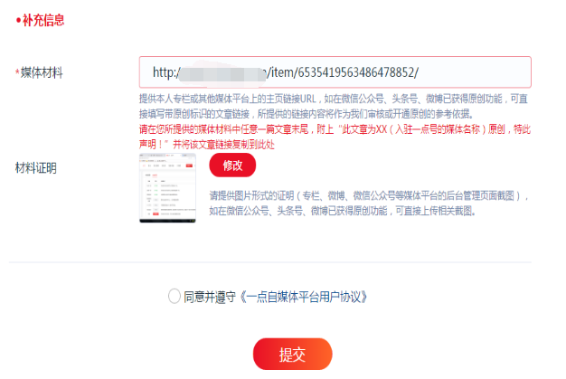 今天搜一客自媒体遇到了一位学员,一点号注册了一段时间了,结果发现只能发布20篇就限制了,想继续发就需要补充信息。怎么补充呢?她在一点号后台看到这个提示,但是看不懂了。