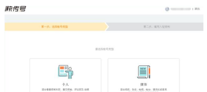 “快传号”的账号类型选择简化为了两类,一类是个人,一类是媒体。
