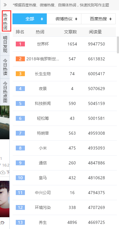 以前说过文章选题是很重要的,用热度更高、话题性更强的选题可以为文章带来更高的流量,这也是为什么自媒体人都热衷追热点的原因。
